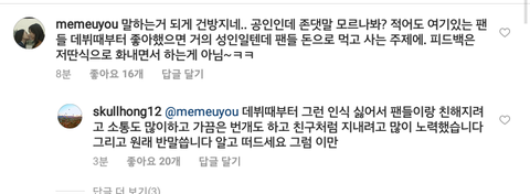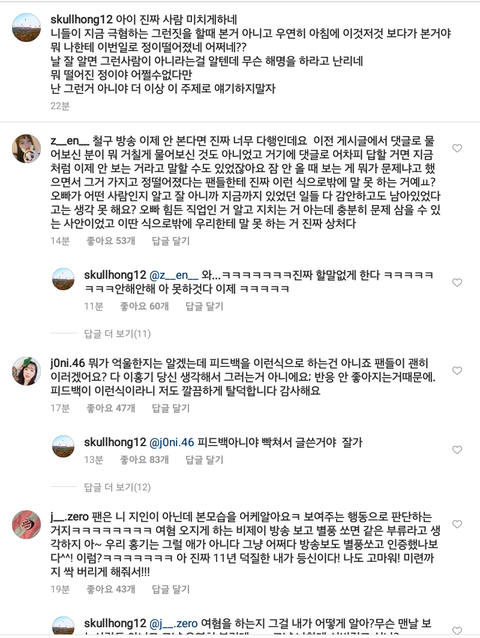그걸 들은 팬들이 인스타에 가서 진짜냐 안봤으면 좋겠다 여혐비제이다 하고 말했는데