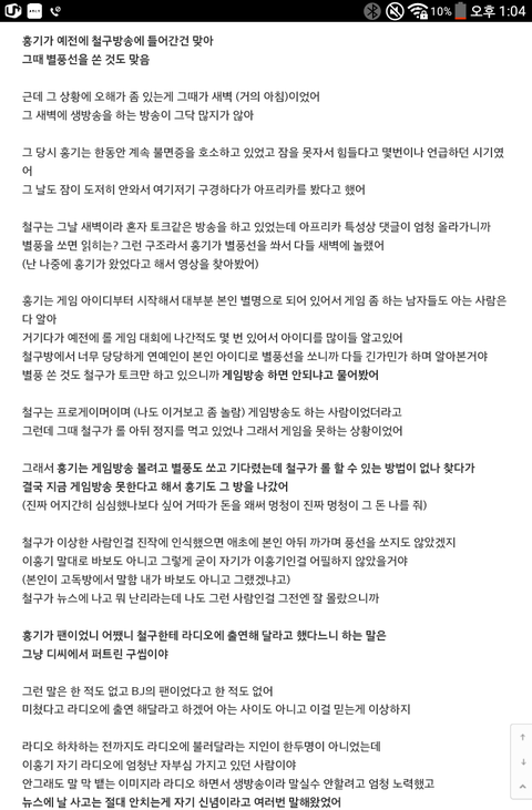 이홍기는 철구가 게임 bj인 줄 알았고, 고독방에서 팬들 설명 듣고 걱정시켜서 미안하다고 함