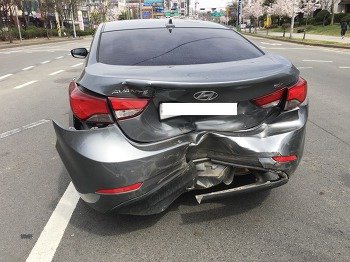 빨간 불에 신호대기중인 제 차를 신호도 보지않고 브레이크도 전혀 밟지 않고 전속력으로 제 차를 박았고 제 차는 뒷쪽이 박살이 났습니다.