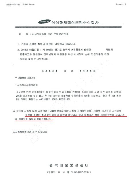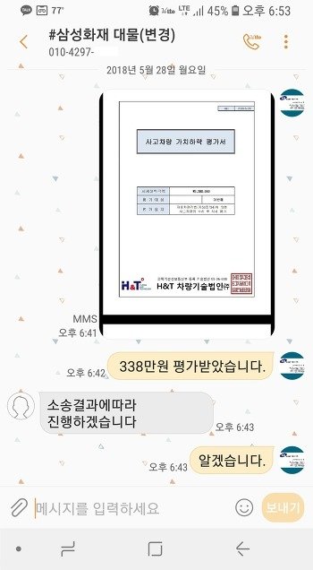 이렇게 평가받았는데 삼성화재에서는 소송하라고 하니 어처구니가 없습니다.ㅠㅠ 삼성화재에서는 제대로 평가하여 격락손해금을 지급해주시길 바랍니다.
