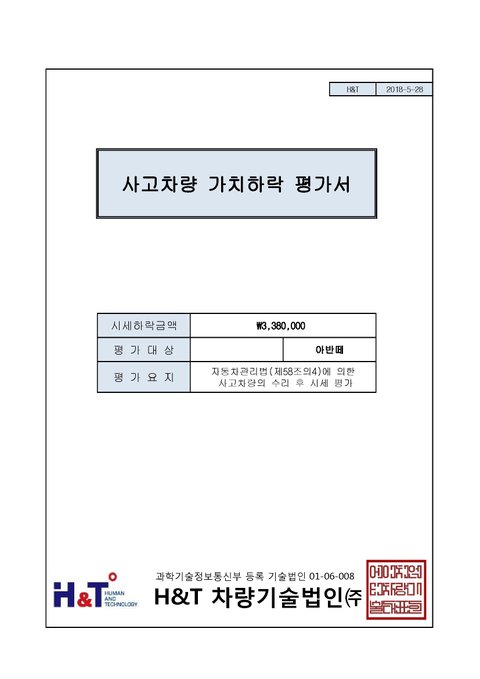 한국자동차보상센터에 의뢰하여 받은 평가서입니다.