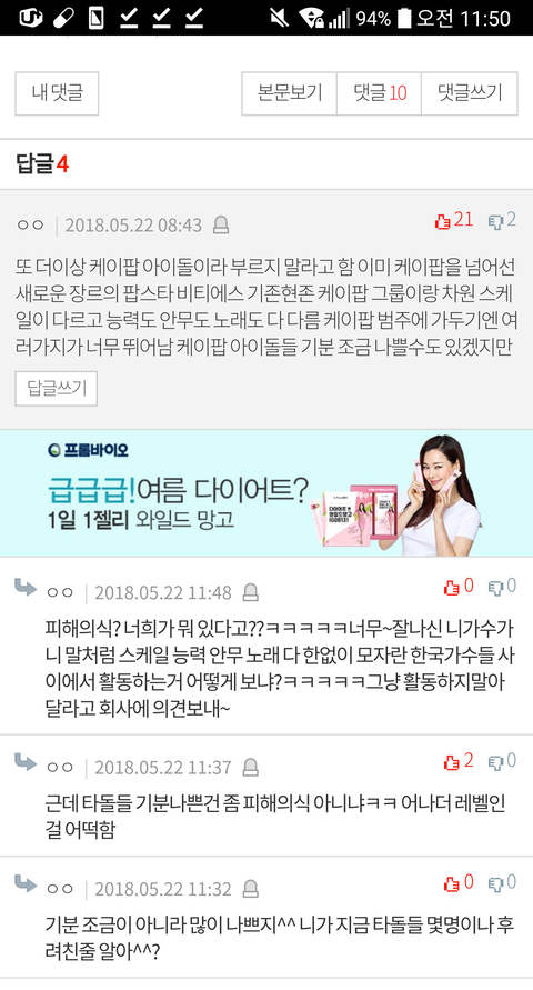 우리가 굳이 말하고 다니지 않아도 모두가 인정하는 가수인데 왜 굳이 타인을 깎아내리면서, 우리보다 밑이라 말하면서 모두의 반감을 사는지 모르겠어.