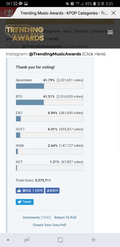 미세한 차이로 지고 있어!! 여유있는 이삐들은 열댓번씩은 하고 오자! return to roll 누르면 중복투표 가능해! 공지 들어가면 링크 있당