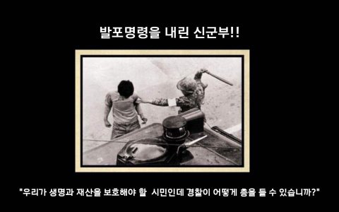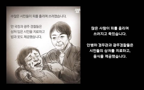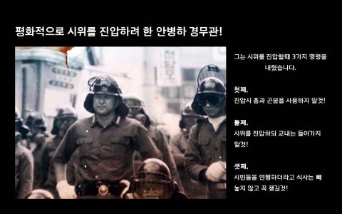 할아버지는 80년 국민의 목숨을 구하다가 군인들에게 끌려가 고문 받고 그 휴유증으로 긴 시간 투병하시다. 60이라는 젊은 나이에 돌아 가셔서 저희 삼남매 모드는 할아버지와 찍은 사진은 물론 얼굴 조차 보지 못했습니다.