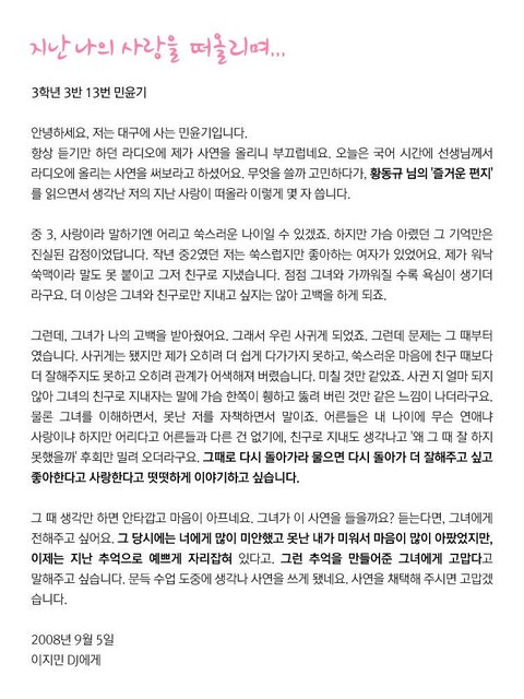(중딩 때 본인이 썼던 글...글 참 잘쓰는듯)