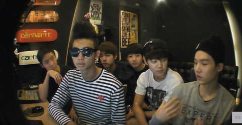 뷔는 데뷔 직전까지 안밝혀졌던 비밀병기 멤버였어(일명 뷔밀병기) 그래서 저 위에 6명이서 영상 촬영할 때 구석 쓰레기통 옆에서 쭈그리고 앉아있었대..ㅜㅜ
