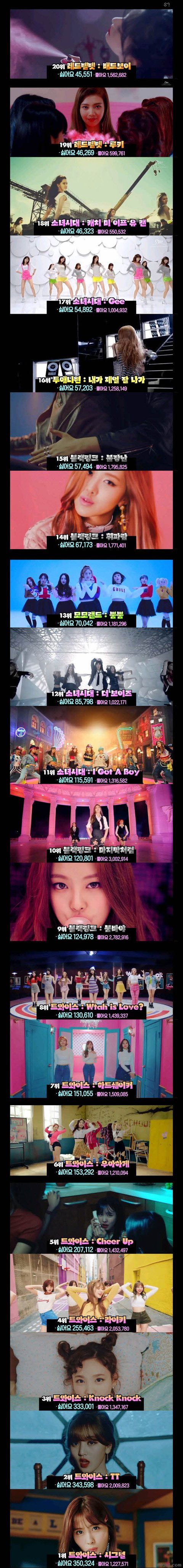 38회 걸그룹 뮤직비디오 싫어요 순위