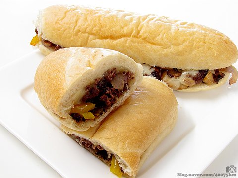 호기 브레드(hoagie bread)가 샌드위치 빵으로 사용되고, 쇠고기, 피망, 프로볼로네 치즈가 필수적으로 들어갑니다.
