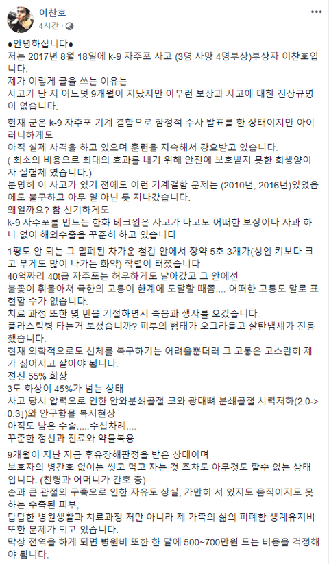 자주포 부상병의 호소