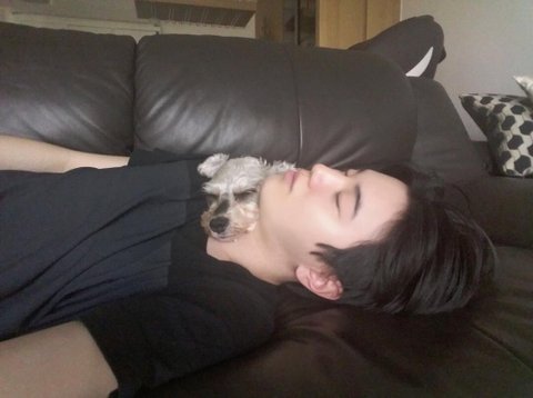 이거 졸귀임ㅠㅠ 강아지가 콩이인지 나리인지는 모르겠지만 강아지랑 같이 이ㅛ는 사진 좋아 눈 감규 자는 사진도 좋아