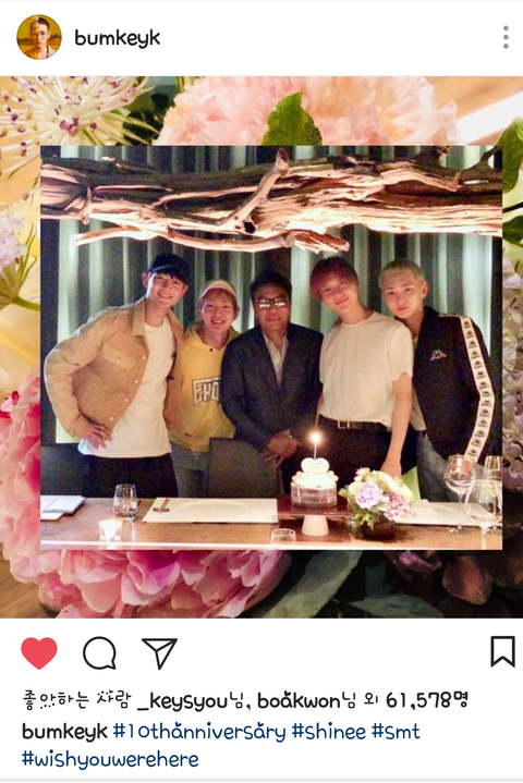 정말로 축하해. 10년이란 시간동안 샤이니라는 이름을 지켜줘서 고마워. 덕분에 쌓인 추억과 새로 만난 인연들이 많아. 덕분에 오늘도 살아가.