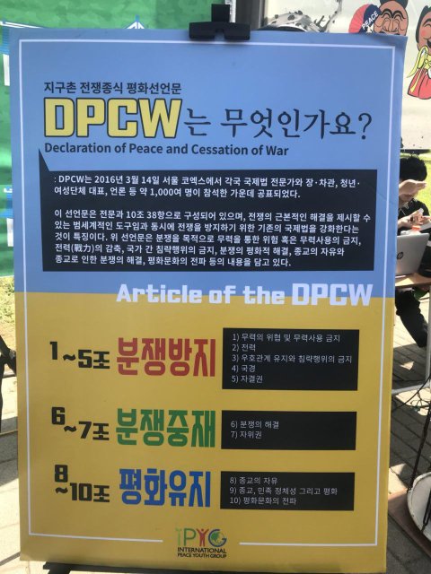 ‘지구촌 전쟁종식 평화 선언문(DPCW)’ 10조 38항을 발표하였으며,