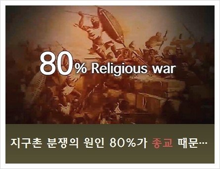 오늘날 지구촌 전쟁의 80%가 종교로 인한 갈등으로 발생하고 있다 합니다.