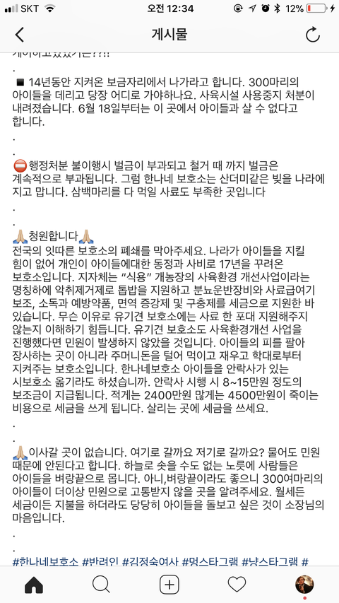 14년동안 있던 유기견보호소가 폐쇄직전이야 300마리 정도되는 유기견들은 안락사 당할 위험이 있고 너희들이 힘이 절실하게 필요해 하이퍼링크는 삽입못했어 번거롭더라도 20초만 투자해줘 될수있다면 주변사람들한테도 알려주라