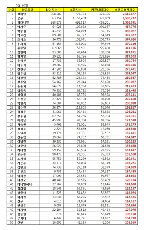 5월 남자 광고모델 브랜드 평판 3위 강다니엘