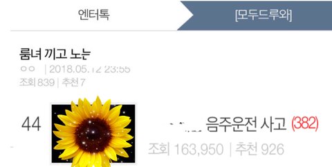 2. 루머 : 연애설, 룸싸롱과 음주운전 루머 룸싸롱 글은 삭제되어 조회수가 낮았던 때의 사진 밖에 없어 조회수 낮은 사진을 사용하였습니다.