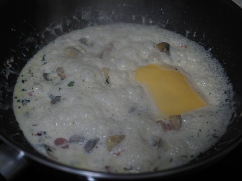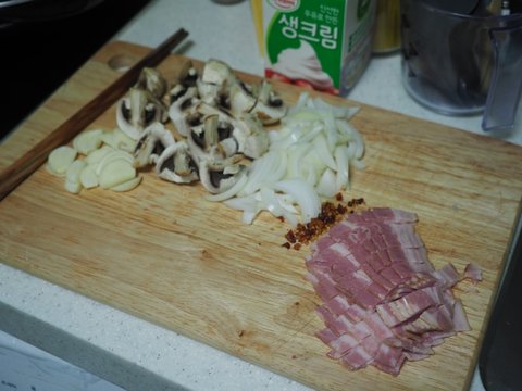 크림. 체다치즈 양파 양송이 베이컨 마늘 기타양념 등등
