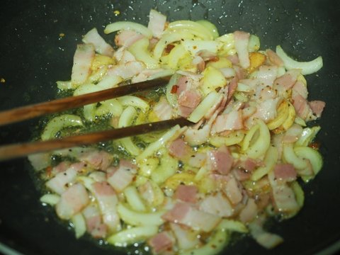 베이컨 넣어서 볶다가