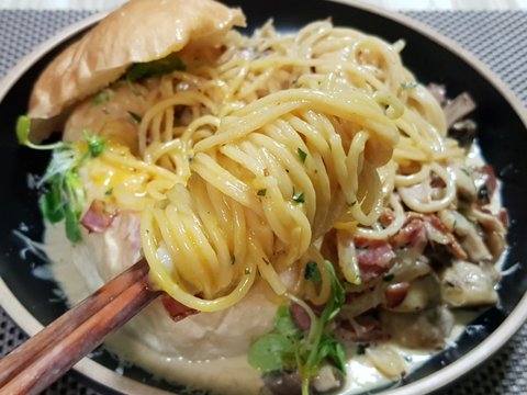 그냥 크림스파게티를 빵 그릇에 담은거 밖에 안되지만 그래도 이쁘게 봐주시길 바래요.