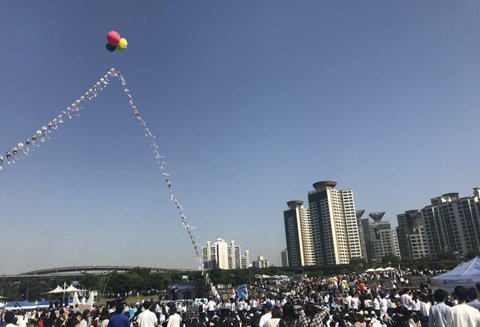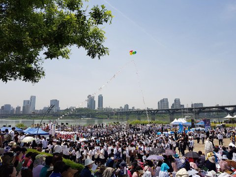 궁금증을 참지 못하고 근처로 가봤습니다...보니까 뚝섬에서 평화관련 행사를 하고 있더라구요.아이들과 즐거운 공연도 보고,특히 젊은 청년들이 많았었는데 "평화"를 외치더라구요.저렇게 많은 사람들이 평화를 소망하면서 한 자리에 모였다는 사실에 크게 감동을 받았답니다.