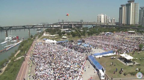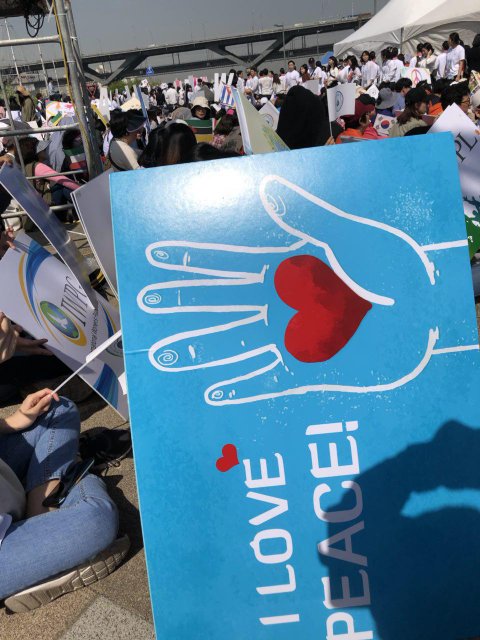 궁금증을 참지 못하고 근처로 가봤습니다...보니까 뚝섬에서 평화관련 행사를 하고 있더라구요.아이들과 즐거운 공연도 보고,특히 젊은 청년들이 많았었는데 "평화"를 외치더라구요.저렇게 많은 사람들이 평화를 소망하면서 한 자리에 모였다는 사실에 크게 감동을 받았답니다.