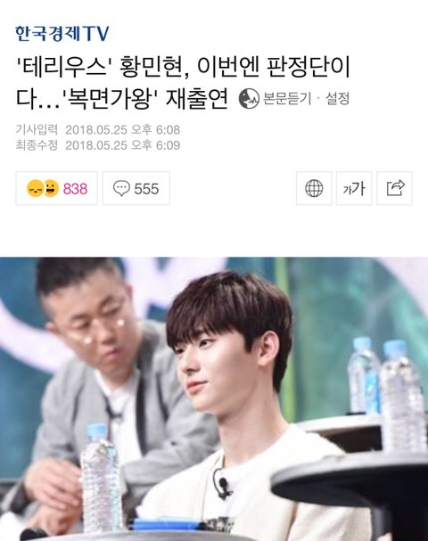 매일 복면가왕 황민현 방송전 댓관할 기사래!