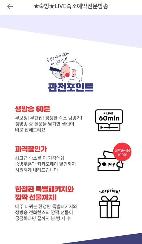 숙소예약 광고하는것 같은데 한시간 라이브래