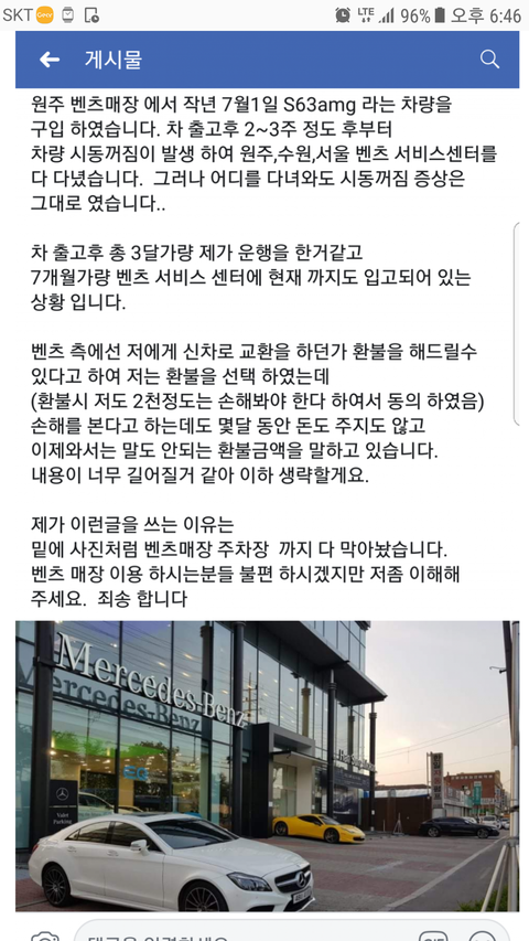 실시간 원주 벤츠 매장 상황
