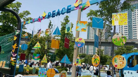 평화를 말하는 영어, 한자, 한글이 보이네요.