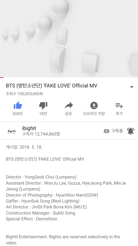 뮤비 업로드 9일(8일+8시간)만에 조회수 1억