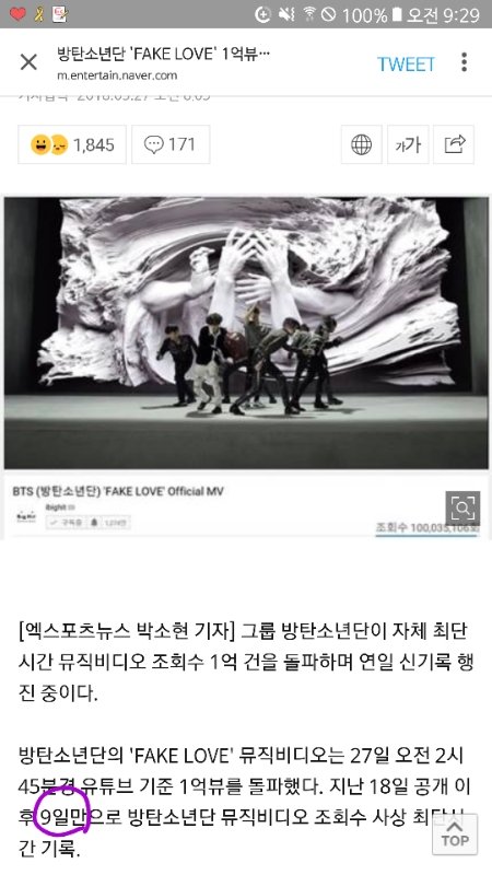 아ㅜㅜ 드디어 1억이네.. 뭔가 화나지만(순화해서 말할께^^) 기쁘다 ㅋㅋㅋ 어휴 할많하않이다 진짜 ㅋㅋㅋ 우리 탄이들 대단하고 자랑스럽다!!!