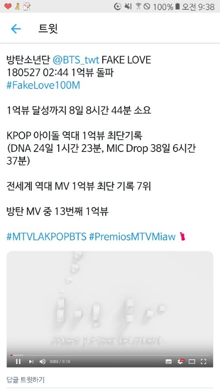 뮤비 업로드 9일(8일+8시간)만에 조회수 1억
