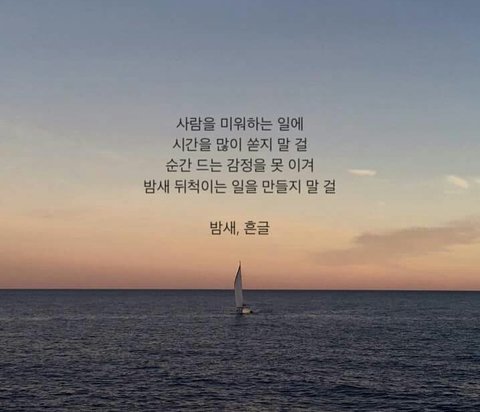 사진에 글처럼 사람을 미워하는 일에 시간을 그렇게 많이 써버리면 다른 사람도 아닌 본인 손해야.