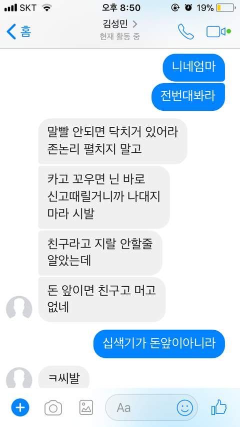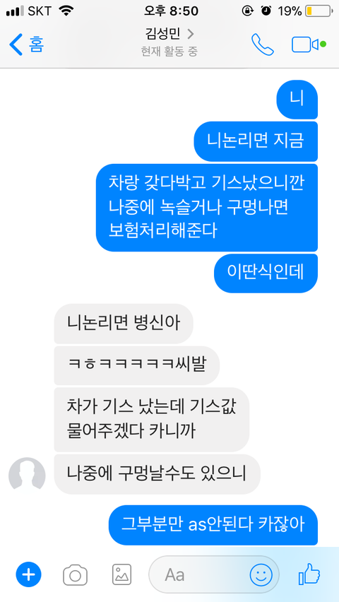 한 2주정도전에 오니츠카타이거라는 브랜드의 금색 신발을 샀어요. 그전에 신던 신발도 같은 브랜드인데 어떤친구가 밟아서 가죽이 벗겨져서 신다보니 구멍이 저절로 나더군요 그래서 신발을 어머니께서 구입을 해주셔서 바꿨습니다 그런데 오늘 그 신발을 신고 외출을 했습니더. 어떤 한 친구와 만나서 시내를 갈려고하는데 그친구가 계속 저랑 장난칠려고하길래 신발까지면 안되니깐 장난치지말라고 정색을 하면서 말해서 안하고 길을 걷던 와중 골목길로 들어갈려고하는데 어떤 40cm정도 되는담이 있어요 그런데 제친구가 그담을 넘을려고하면서 점프하다가 제 신발을 같이 쓸어서 가죽이 벗겨졌습니다 그래서 몹시화나서 어떡할껀데라면서 화를냈죠 근데 계속 옆에서 웃으면서 아니 진짜 화났나를 옆에서 몇분동안 계속 얘기하길래 너무화나서 샀던매장으로 같이갔습니다 그 매장으로 가니깐 as는 안된다고 해서 일단은 나와서 얘기를 하는데 그친구 입장이 ‘니도 못피한 과실이 있고 나중에 구멍이 나면 신발한개를 사주겠다 지금 당장은 안된다’인데 그말을 하면서 쌍욕을 크게해서 옆에사람들이 다 쳐다보고 갔구요 저가 조용하라고 하는데도 욕을 계속하면서 오히려 적반하장식으로 그깟까진게 뭐라고 내가 돈을 지금 주냐면서 나중에 구멍나면 준다고 하길래 내가 이거 법대로할까라고 물어봤지만 법대로하면 걔가 제손해라고하네요 하; 무슨 이런애를 만나서 진짜 평소에도 장난심하게 치는애이긴한데 정말 저가 과실이 있는건가요 단지 서있었다는이유만으로 ? 그 담을 넘고 점프를 한 게 잘못아닌가요 정말 이해할 수가없네요 저번에 신던 같은브랜드신발에 같은부분을 어떤친구가 밟아서 가죽이 벗겨지고 몇개월지나서 구멍이난건데 저번엔 넘어갔지만 이번은 참을수가없네여 하