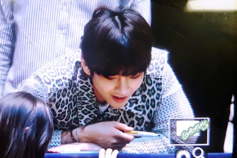 어제 했던 알라딘 팬사인회에서 정말 작고 어린 팬이 옴 그래서 7명 다 귀여워 했다고 하는데 그 꼬마팬이 키도 작아서 방탄 얼굴이 안 보였음 그래서 수습했는데 그 방법이 진짜 엄청 귀여움