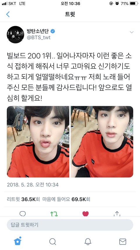 정작 본인들은 어떨떨하고 신기한거 같오 자기들 얘긴데ㅋ 다들 그전에 1,2위 할거라 예상을 접해서 그나마 덜 흥분상태일란가ㅋ여기 이삐들도 차분하네 넘 흥분하지말자^^ ㅇㅌ도 글코 요즘 타가수들과 이간질 신종 수법등등 ㅇㄱㄹ들 난리친다 말려들지말자 우리는 탄이들과 묵묵히 가던길 가면돼!!!
