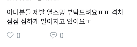 다 좋고 스밍 독려도 좋은데 굳이 다른 사람들도 다 보는 댓글에다 이런것좀 쓰지말았으면...OTL 혹시 팬톡 아미중에서 있다면.
