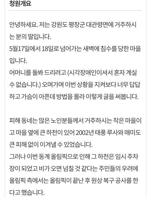 평창올림픽때문에 할아버지 할머니분들 집 잃으셨어ㅠㅠ청원좀해줘ㅠㅠ