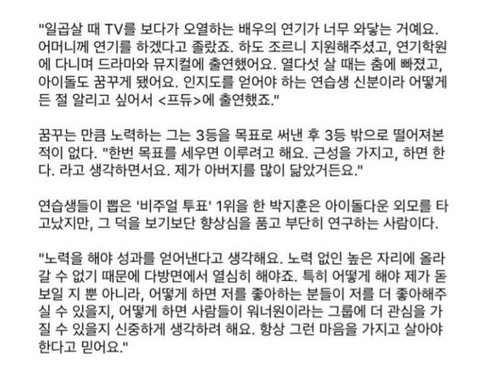 끝으로 박지훈이 옛날에 팬들한테 했던 말 쓰고갈게.