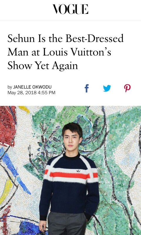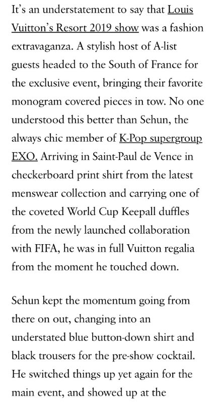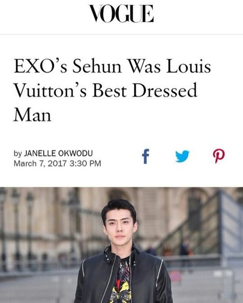 이번 루이비통 컬렉션을 케이팝 슈퍼그룹 엑소의 세련된 멤버 세훈보다 더 잘 이해한 사람은 없었다 2회 연속 베스트 드레서로 선정 이런 내용임 대박대박!!!!