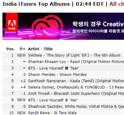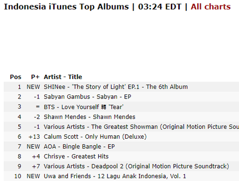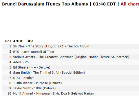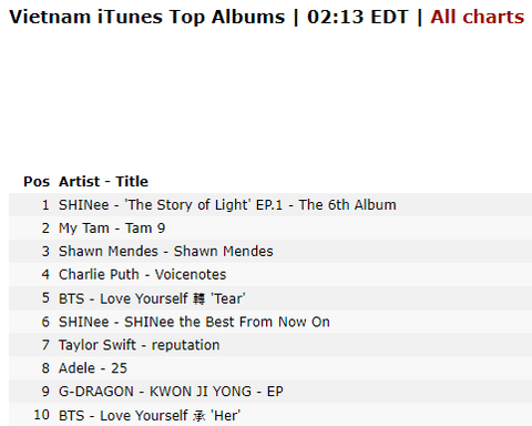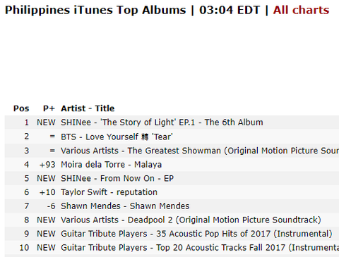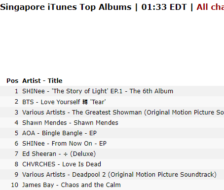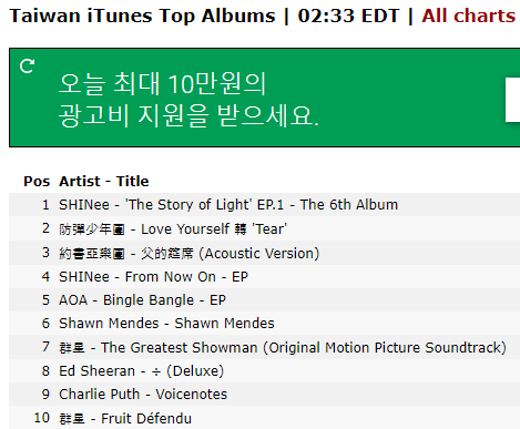 아시아지역 음원차트 올킬한 샤이니.JPG