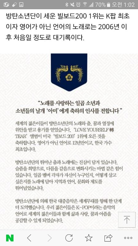 방탄소년단 팬은 아니지만 곧 팬이 될것 같은 사람임...ㅠㅠㅠㅠ 슈가가 입덕 부정기도 찬찬히 설명해주던데 진짜 아미 될까봐 무섭다 고3인데
