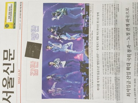 아.. 글구 나 오늘 제이홉님 봤다ㅠㅠ 우연히.. 이건 사담이라.. 조심스러운데 넘 미남이셨어 나 쓰러질뻔 해짜나ㅠ 암튼 사담은 여기까지.. 신문 봐줘ㅋ(미안 이미지가 다 돌아갔네ㅠㅠ 걍 돌려서 봐줘..)