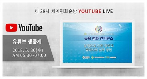 세계평화투어 실시간 동영상 보기5월 30일(수)AM 05:30~ 07:00 유튜브에서 라이브로 시청하세요. ☞ _/2skSPXm(한국어 방송)