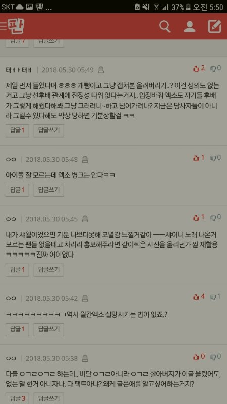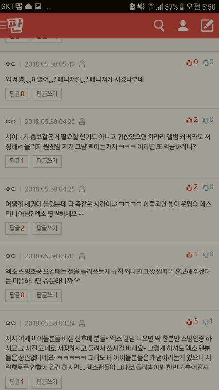 똑같은 내용 까글 2개가 톡선 올랐는데 그 중 한 글만 비정상적으로 '새벽 5시'임에도 불구하고 끊임없이 댓글 달림