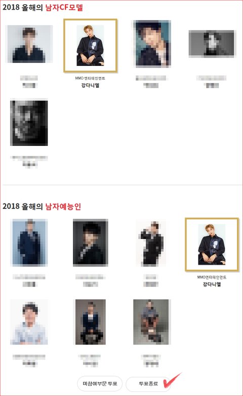올해의 남자씨엪모델과 남자예능인 2개 부문 후보인데