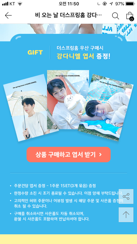 여름대비 우산사고 강다니엘 엽서세트 받자