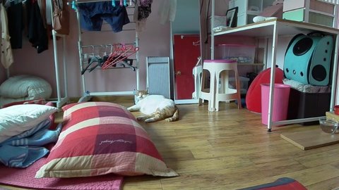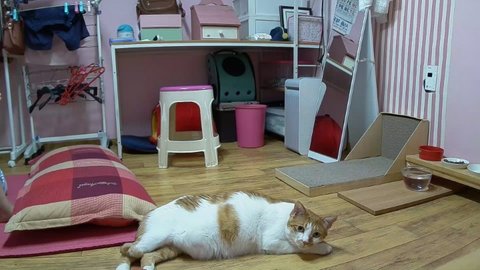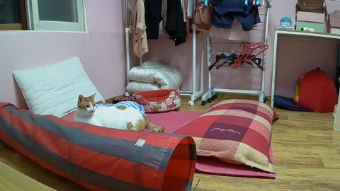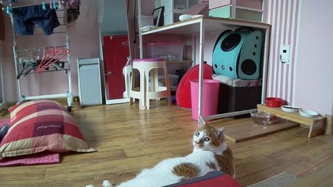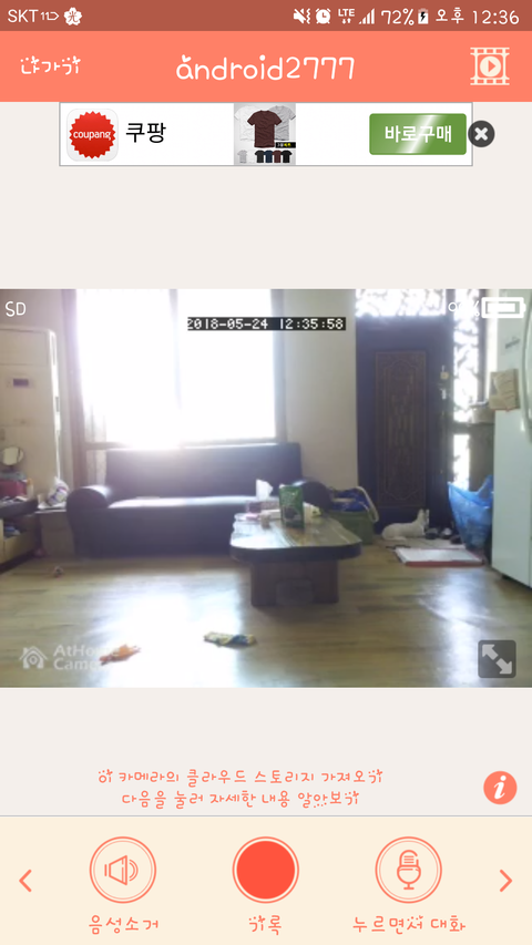 다음날 출근한 집사는 핸드폰으로 홈캠화면을 봤음.