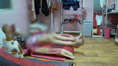 밤에 잘려고 불끄고 집사는 또 홈캠을 봤음.