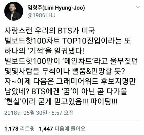 ++) 지금 빌보드차트에 들어가보면 아직 없어